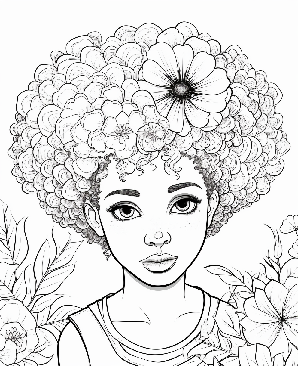 Unleash your creativity with this captivating coloring page PDF featuring a woman surrounded by a bouquet of blossoming flowers. Let your artistic talents flourish as you add your own colorful touch to this enchanting scene!