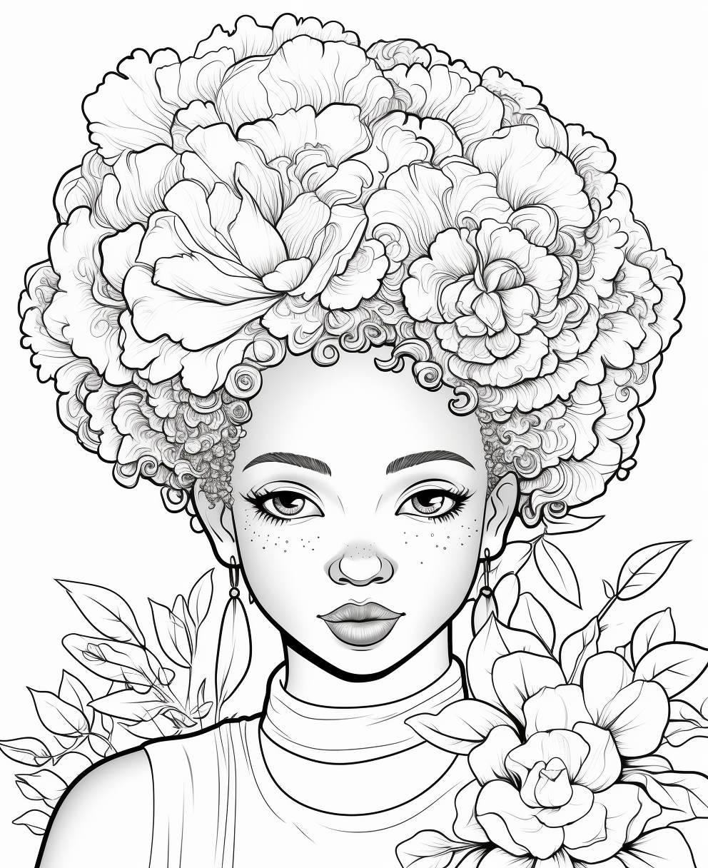 Unleash your creativity with this captivating coloring page PDF featuring a woman surrounded by a bouquet of blossoming flowers. Let your artistic talents flourish as you add your own colorful touch to this enchanting scene!