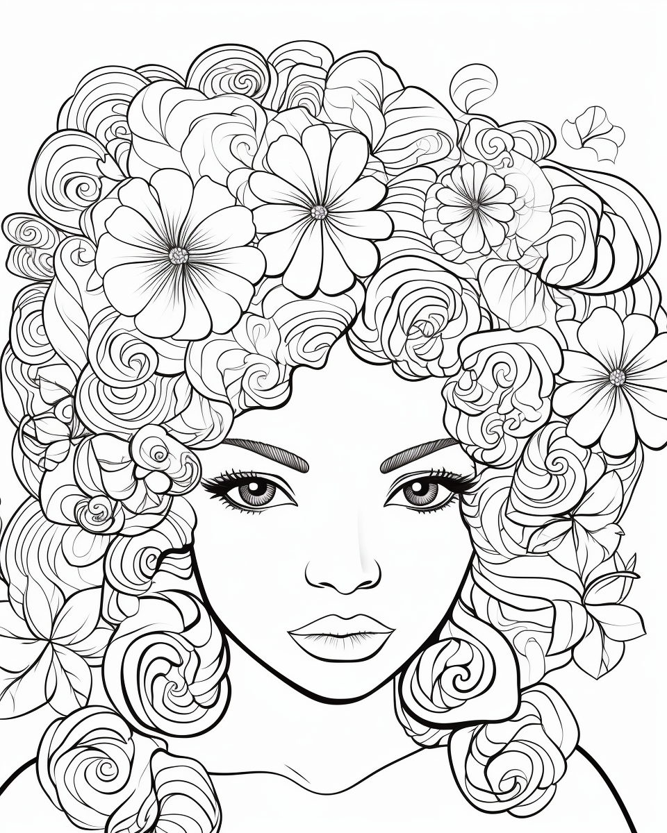 Unleash your creativity with this captivating coloring page PDF featuring a woman surrounded by a bouquet of blossoming flowers. Let your artistic talents flourish as you add your own colorful touch to this enchanting scene!