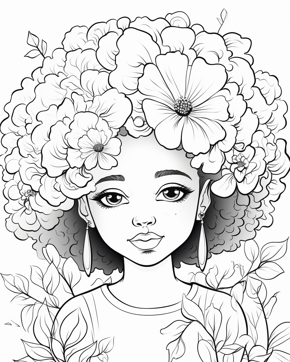Unleash your creativity with this captivating coloring page PDF featuring a charming girl surrounded by a bouquet of blossoming flowers. Let your artistic talents flourish as you add your own colorful touch to this enchanting scene!"