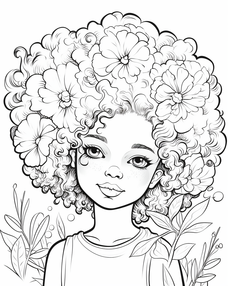 Unleash your creativity with this captivating coloring page PDF featuring a charming girl surrounded by a bouquet of blossoming flowers. Let your artistic talents flourish as you add your own colorful touch to this enchanting scene!"